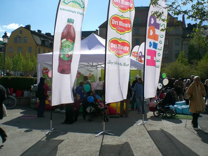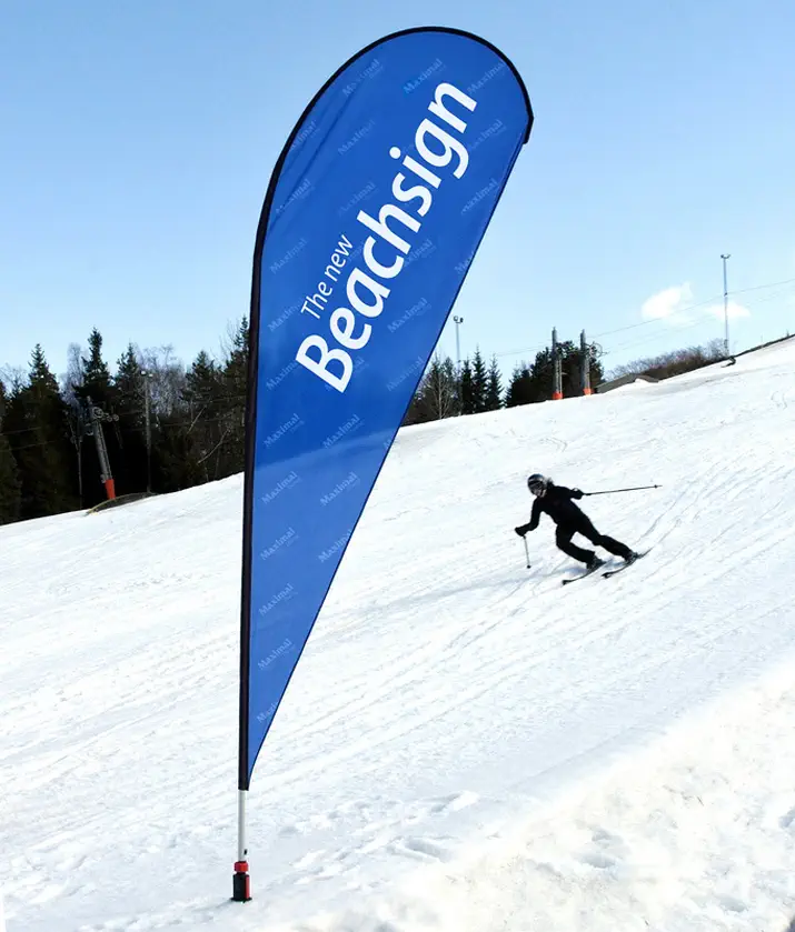 Nicht nur in Strandnähe sind unsere Beachflags ein häufig genutzter Werbeträger. Auch bei anderen Outdoor-Events wie Sportveranstaltungen oder Konzerten ist diese Form der Werbetechnik sehr populär. Unsere Beachflags könnt ihr in vier verschiedenen Formen ordern: die gerade Form mit und ohne Ausleger, die konvexe Form sowie die Tropfenform. Alle Systeme sind mit UV- und wetterbeständigem Fahnenstoff und verschiedenen Fuß-Systemen versehen. Der Stoff kann gewaschen und gebügelt werden und ist brandhemmend. Ein hübscher Effekt des leichten und lichtdurchlässigen Textils ist im Ürbigen, dass man das Druckbild in spiegelbildlicher Form auch von der Rückseite der Beachflag betrachten kann. Nähere Informationen findet ihr natürlich noch auf unserer Beachflag-Produktseite. Schaut auch zunächst aber die Werbetechnik-Inspirationen für Beachflags an.