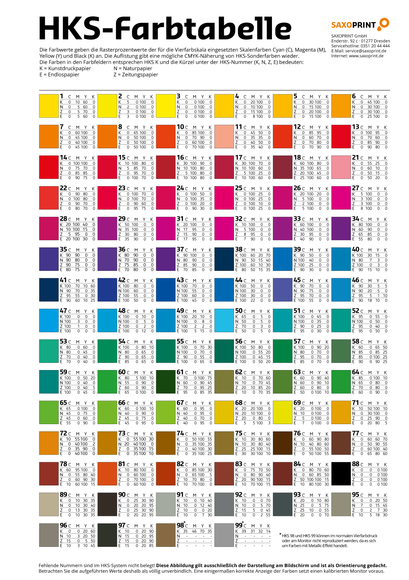 HKS-Farbtabelle zum Download
