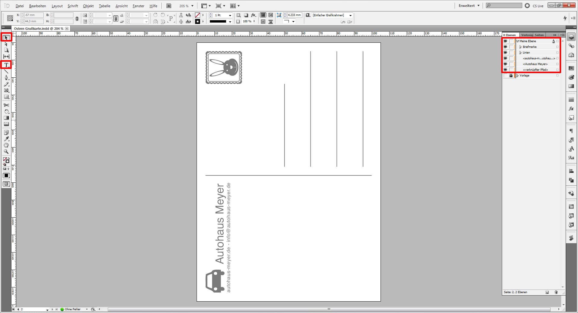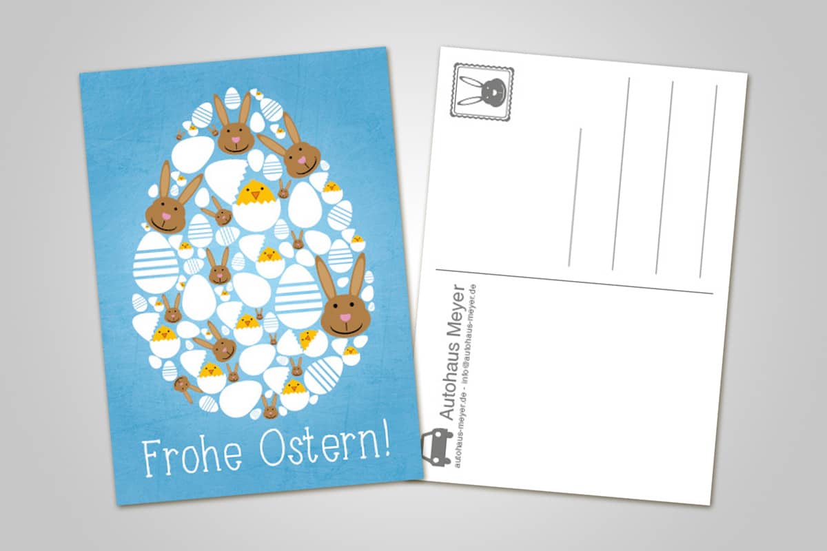Wir werde heute nicht klären, ob nun Huhn oder Ei zuerst da war – stattdessen werden wir jedoch beide Elemente anschaulich zu Papier bringen. In Form einer Grußkarte erstellen wir mit Hilfe von Adobe Illustrator und Adobe InDesign putzige Ostergrüße für die Stammkunden einer fiktiven KFZ-Werkstatt. Diese Grundidee kann natürlich auf diverse Sparten adaptiert werden. Neben der Software benötigt ihr etwa eine halbe Stunde Zeit und ich würde vorschlagen, dass wir einfach loslegen.